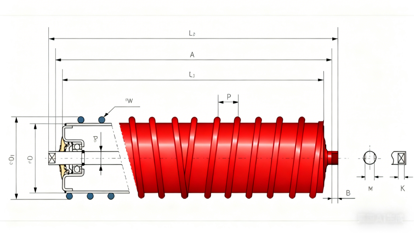 This product is also positioned as a belt-guiding solution. The spiral’s angled/helical geometry can gently guide the belt back toward the center, helping reduce side drift and mistracking on the return run. This is especially useful in applications where tracking issues are frequent due to uneven loading, sticky material residue, or long conveyor runs.